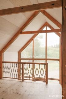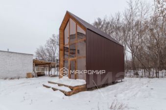 - Кровля из сэндвича панелей состоящие из фанеры повышенной влагостойкости 9 мм и минераловатный утеплитель стеновой "ТЕПЛОKNAUF", теплопроводность 0,037 Вт/мК (ТУ 5763-001-73090654-2009), толщина утепления - 150 мм. Окрашен декоративным покрытием "Оберег"