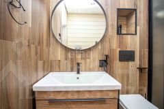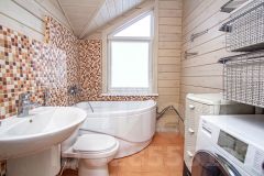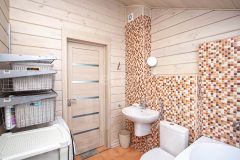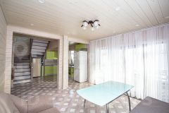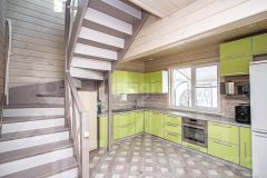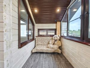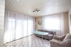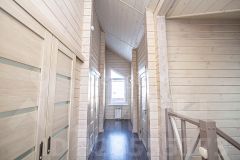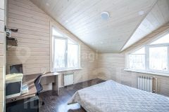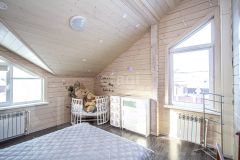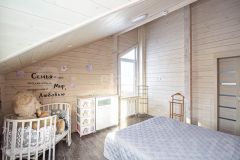 Все комнаты изолированные. На первом этаже расположены: кухня-гостиная с выходом на большую террасу с видом на лес, спальня, гостевая комната, санузел с душевой. На втором этаже: 2 спальни, гардеробная, санузел с большой ванной и утеплённая лоджия, которая служит дополнительной комнатой.