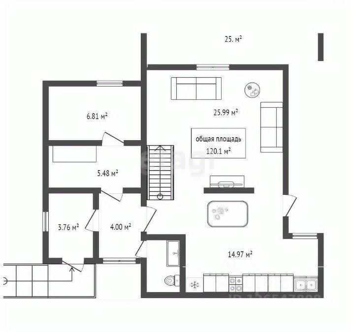 Общая площадь - 120кв.м.