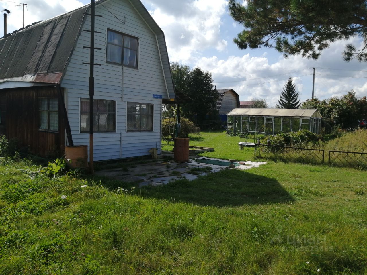 Так же на участке есть детская площадка, теплица. Из посадок жимолость, облепиха, пионы.