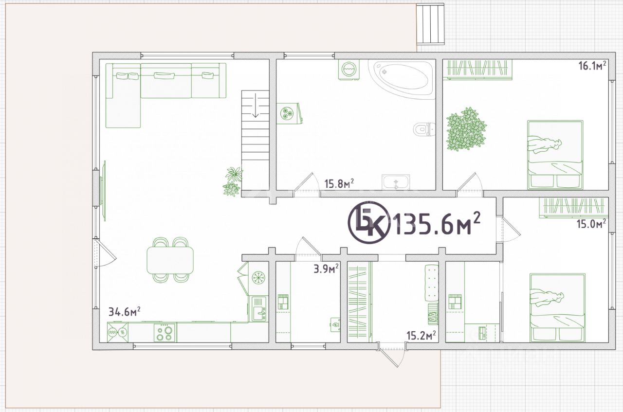 Участок ровный и ухоженный с автополивом по всей территории.