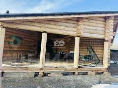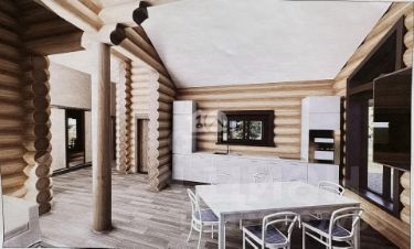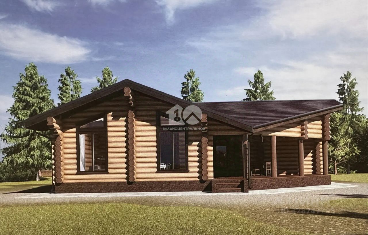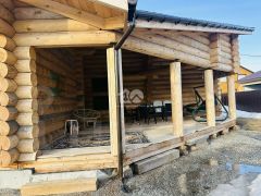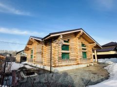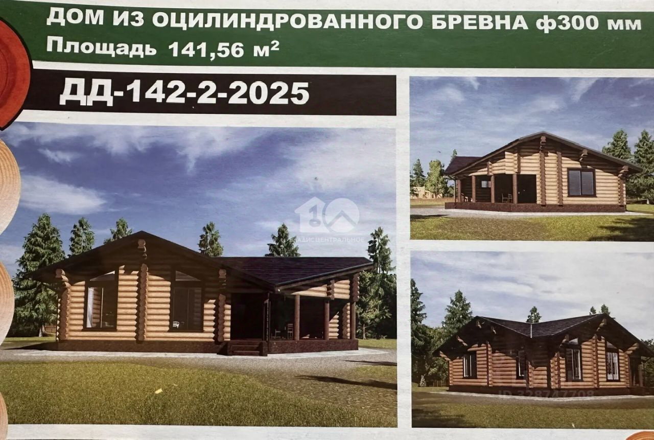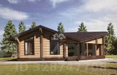 Одноэтажный дом из оцилиндрованного бревна ф 300, площадью 141,56 м2, с просторной террасой. Новым владельцам в подарок дизайн проект!