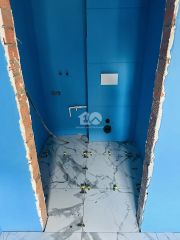 Баня из кирпича 30 м2: парилка, санузел, душевая и комната отдыха, пол керамогранит, в санузле и душевой сделана гидроизоляция, теплые полы, куплен кафель, внешнее освещение.
