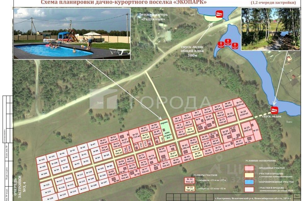 Инфраструктура поселка включает парковку для гостей, детскую площадку, бассейн, беседки для пикников, оборудованный пляж с шезлонгами и причалом, а также спортивные площадки. В 500 метрах расположен магазин, детский сад — в пяти минутах езды. Благодаря близости к автодороге Бурмистрово-Завьялово выезд в Новосибирск занимает не более 30 минут, что делает участок удобным как для постоянного проживания, так и для сезонного отдыха.