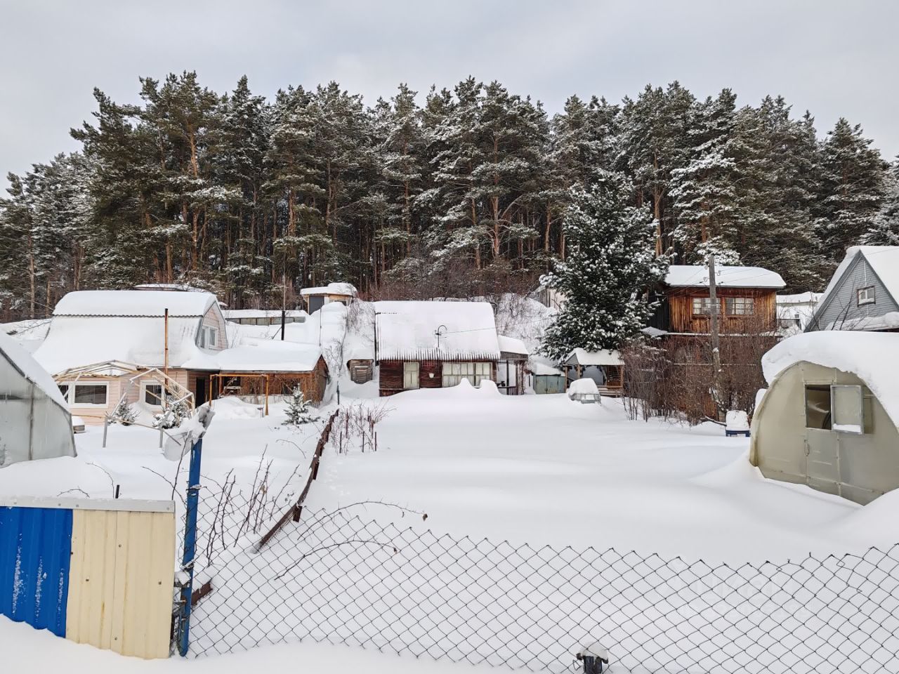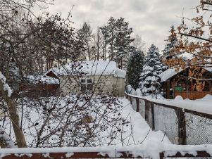 Участок благоустроен: подведено электричество, газовая труба проходит под землей вдоль фасада участка, вода заведена в дом, организован круглогодичный подъезд по дороге с щебеночным покрытием, зимой проезды чистятся, территория товарищества находится под охраной. Соседи проживают постоянно, что формирует спокойную и контролируемую среду. Природный ландшафт дополняют взрослые сосны, создающие тень и уют, а также плодовые кустарники.