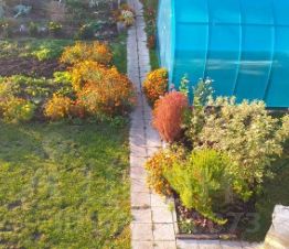 Дорожки выложены тротуарной плиткой.