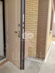 Дорогие кашированные окна, дверь с терморазрывом, выход на террасу с бетонным крыльцом.