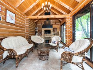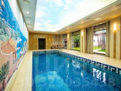 На участке, помимо дома, также располагается отдельно стоящий spa- комплекс, который включает в себя баню из оцилиндрованного бревна, в которой все предусмотрено для полноценного отдыха и релакса, в том числе имеется кухонно - столовая зона, а также бассейн площадью 150м кв., построенный с использованием современных технологий и материалов (профессиональная очистка, подогрев, противоток, морская вода).