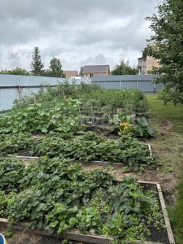 Специально выделено 2-3 сотки под огородную часть, есть теплица. Растения: груши, яблони, смородина, малина, земляника.
