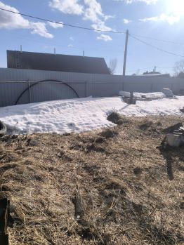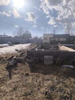 участок в хорошем месте ,с прилеганием протоки от Оби (рыба,утки ,лодки ,парусники)не топит. по границе проходит газ,городская вода( не подключено) на участке нестандартный железный гараж.бытовка. вбитые бетонные сваи для постройки дома.6*8.арматура пол тонны.