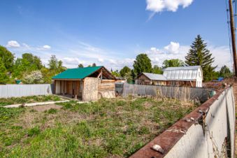 Перед гаражом оборудована парковка с крытым навесом. Есть недостроенная баня.