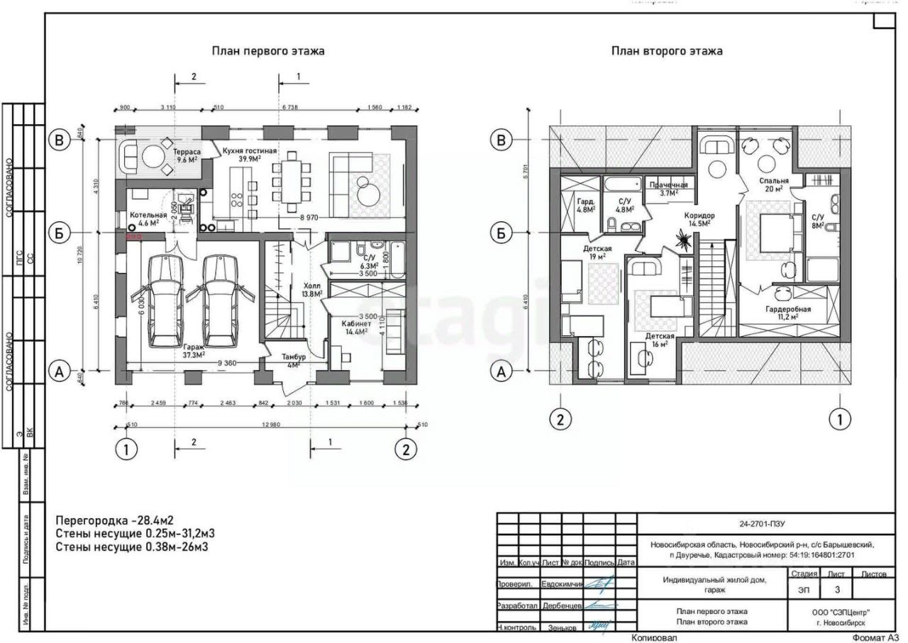 Удобная и продуманная планировка, на первом этаже находятся кабинет 14.4 м2, кухня-гостиная 39,9 м2, котельная и санузел, на втором этаже 2 детских спальни и 1 мастер-спальня, санузел и прачечная.