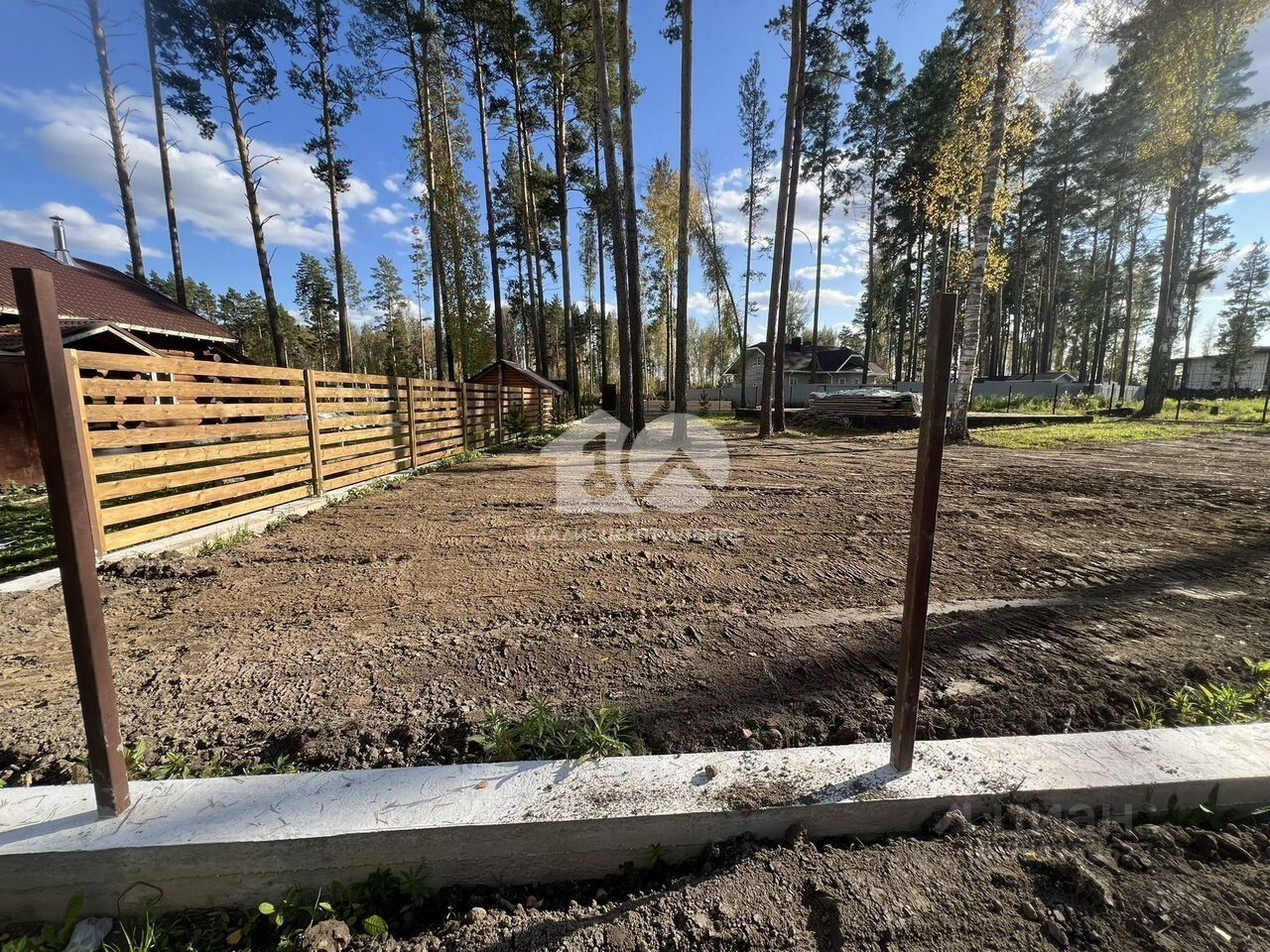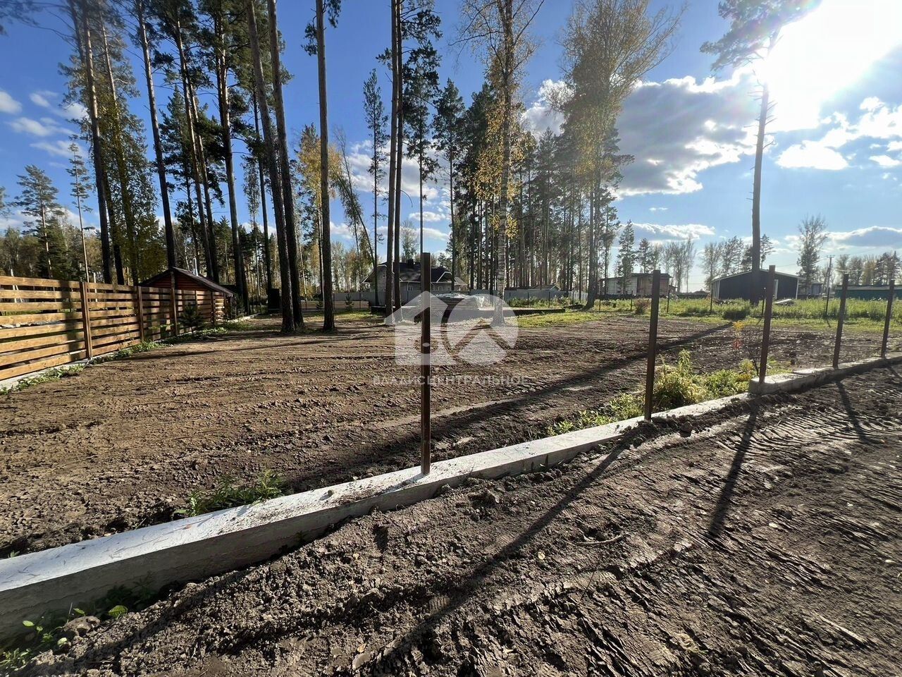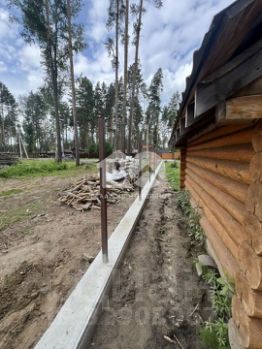 Залита лента под забор по периметру участка (140 погонных метров) и установлены столбы под забор. В настоящий момент монтируется забор.