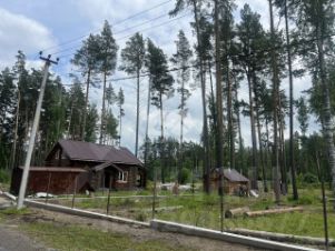 На участке сохранили cocны, чтобы сохранить природный ландшафт, создать уютную атмосферу, обеспечить экологичность, чистый воздух и живописный вид из окон.