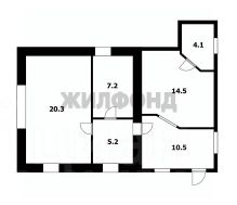 Просторная жилая площадь — 67,7 м2: кухня-гостиная (14,5 м2), две удобные комнаты (20,3 м2 и 7,2 м2), большой коридор (10,5 м2). Веранда и летняя кухня.