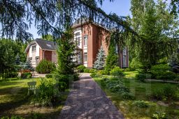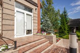 На участке площадью 30 соток расположены: отдельно стоящий гараж 91.8 кв.м , построенный в 2014 году на 4 автомобиля, техническое помещение ,котельная. Теплица .Ухоженная большая зелёная территория, выполнен ландшафтный дизайн. Территория под охраной, а подъезд к дому асфальтированный.