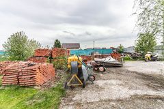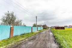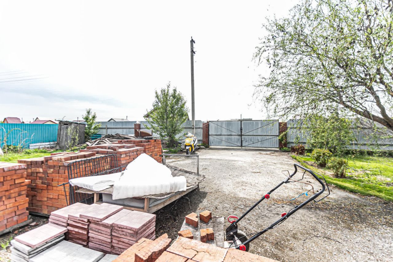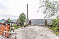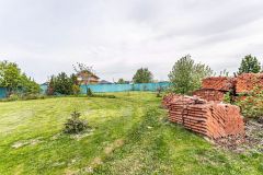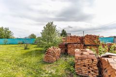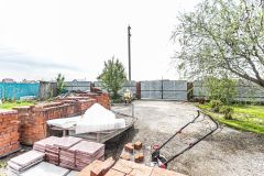 Территория полностью подготовлена к строительству: завезены поддоны с кирпичом, оборудовано парковочное место с бетонным покрытием, установлен прочный металлический забор с распашными воротами.