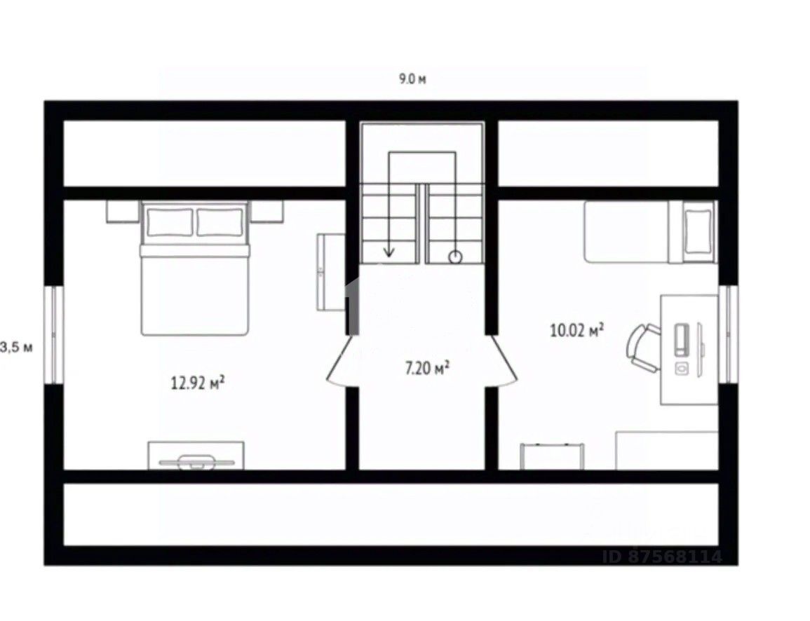 Общая площадь: 90 м² (дом 85,5 м² + крыльцо 4,5 м²).