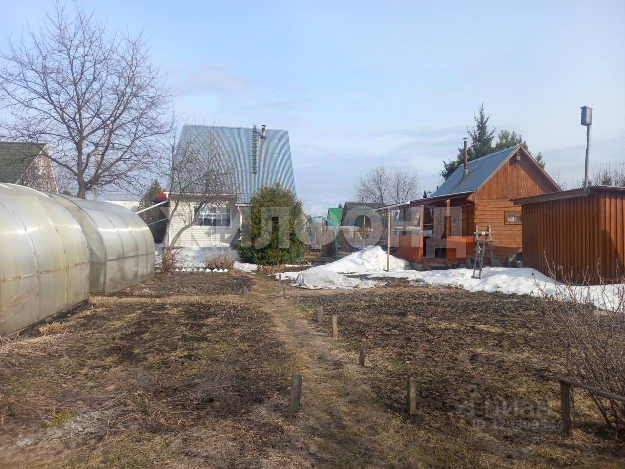 На участке баня из бруса с запасом дров. Имеется хоз постройки. Два парника. Плодоносящие деревья, кустарники и многолетние насаждения.