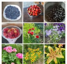 Декоративные и плодовые кустарники, многолетние цветы, плодовые молодые деревья.