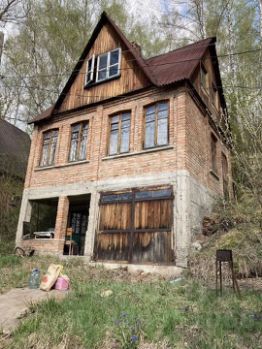 На первом этаже расположена кухня с печкой и помещение под гараж/склад. На втором этаже две комнаты, камин дровяной. При желании можно использовать третий этаж под любые нужды. Крыша ондулин.
