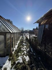 Дом построен из бревна диаметром 24 см., общая площадь 80 кв. м, в них большая кухня квадратов 15, зал и большой холл с двумя спальнями на втором этаже - 63 кв. м. Высота потолков 2,7 м создаёт ощущение простора и свободы. Также на участке построены из бревна Баня и Гараж, что является большим плюсом для любителей загородного отдыха. Над гаражом можно организовать ещё одну большую комнату. Также есть летний душ, уличный туалет, сарай, пара парников/теплиц и железный куб для воды (поливная вода).