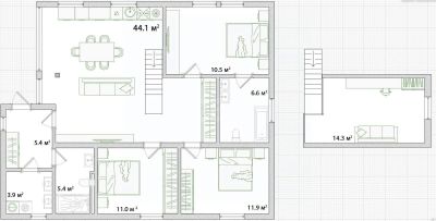 Продуманная планировка включает просторные жилые зоны, светлую кухню и комфортные спальни, идеально подходящие для семейного уюта и гармонии.