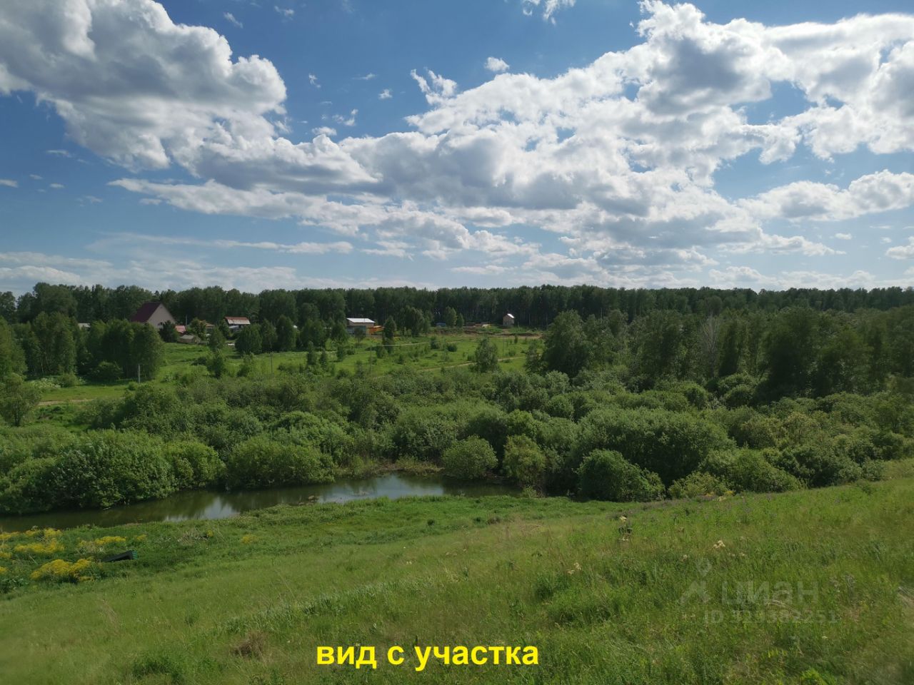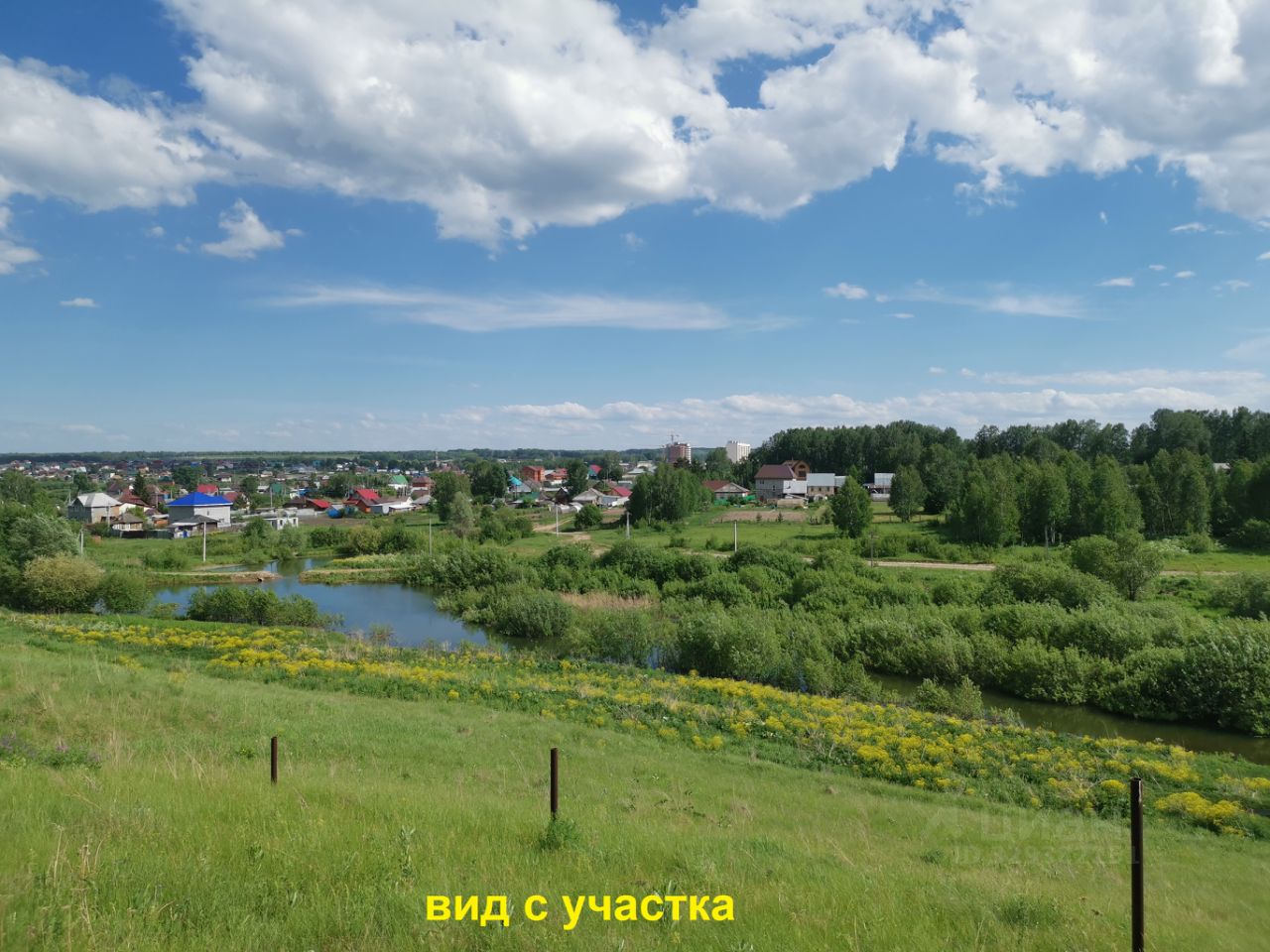 Панорамный вид на озеро, речку, лес.
