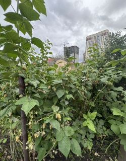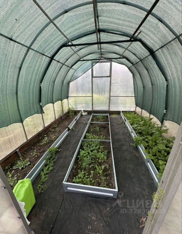 На участке есть яблони, кусты малины и др. посадки (разные ягоды). Можно выращивать цветы. Есть большая теплица.