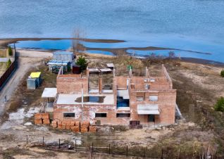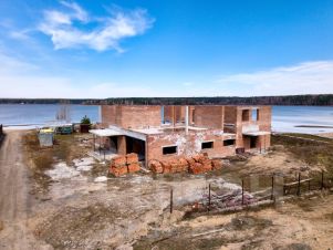 На участке находится дом, в стадии строительства — кирпичный монолит на монолитной плите. Фундамент и перекрытия — цельная железобетонная плита, стены из керамического кирпича (самый стойкий материал). Технология как в современных высотках: дом строится монолитным, это гарантирует прочность и долговечность.