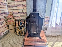 Дом щитовой утеплённый, на ленточном фундаменте, 2х этажный, внизу 2 комнаты: входная-кухня, гостиная с теплой печкой, зимой за 20 минут растапливает комнату отлично. На втором этаже 2 комнаты.
