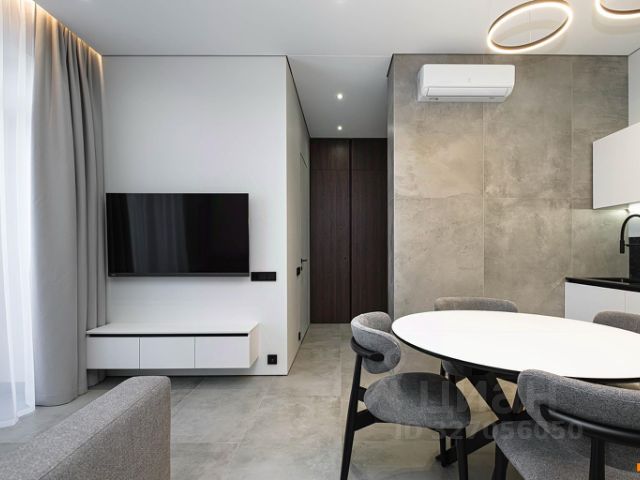Авторский дизайн с использованием дорогих материалов и изысканная мебель, создают атмосферу респектабельного комфорта. Эргономичная и максимально удобная планировка, с четко выраженными функциональными зонами и продуманными визуальными взаимосвязями: просторный зал, состоящий из диванной зоны и стильной кухни, с выходом на большую лоджию. Приватная спальная зона с двуспальной кроватью и вместительным шкафом. Французское остекление — окна в пол, всегда много солнца и воздуха. Санузел оборудован качественной европейской сантехникой, установлена душевая кабина. Общий холл в зоне прихожей. Полная комплектация квартиры мебелью и бытовой техникой. Много мест хранения. Кондиционирование.