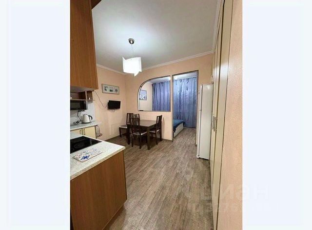 На кухне: фильтр для воды, плита, чайник, микроволновая печь, холодильник, кофемашина, обеденный стол и стулья, вся необходимая посуда.