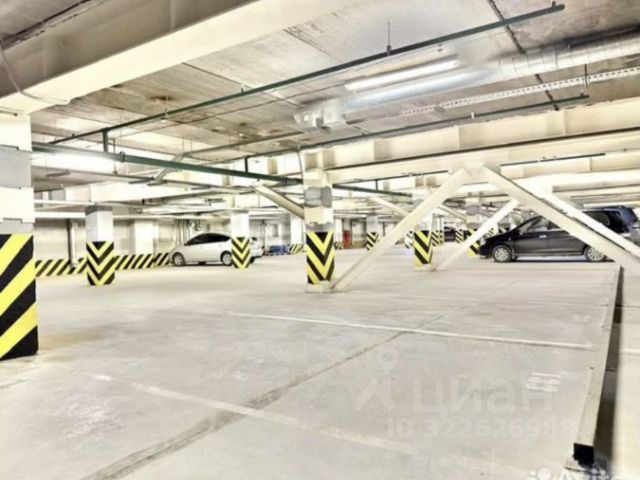 Просторное место на подземном паркинге. Удобный заезд, шлагбаум, охрана. 19 кв м