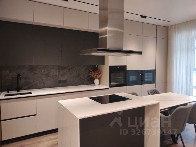 Кухня: гарнитур вместительный, сделан под высокий рост, диванчик, стол, 3 стула, посудомоечная машина, варочная панель, вытяжка, духовой шкаф, микроволновая печь, холодильник высокий 2 м, чайник.