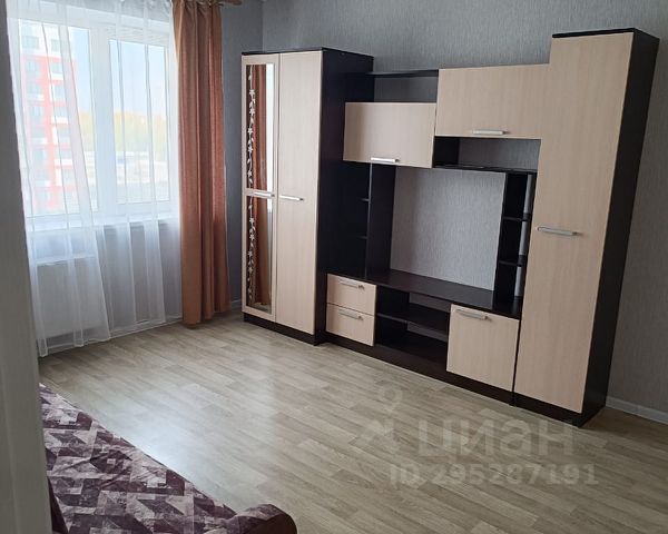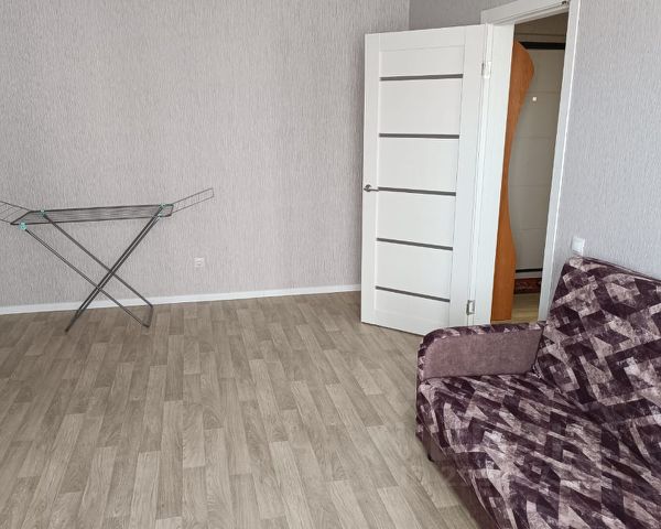 1-комнатная квартира с мебелью и техникой Планировка стандартная, комната изолирована. Комната: — диван — кресла — шкаф-купе с зеркалом — телевизор — напольное покрытие ламинат — потолочное освещение — выход на лоджию Кухня: — кухонный гарнитур — плита с духовым шкафом — холодильник — электрочайник — стол, табуреты — лоджия с остеклением Санузел: — совмещённый — ванна — унитаз — раковина — плитка Прихожая: — место для хранения — межкомнатные двери Окна и вид: — окна выходят на жилой квартал — открытый обзор