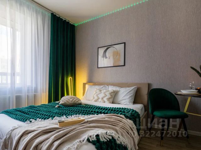 Яркая изумрудная студия! С качелью на балконе, новой мебелью и свежим ремонтом. Вместимость до 3-х человек.