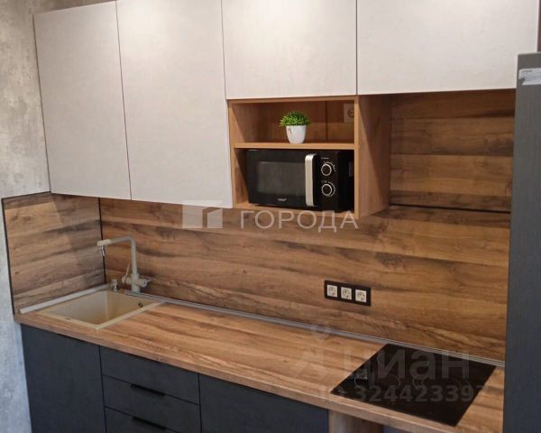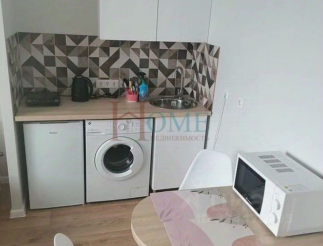 Уютная однокомнатная студия с функциональной планировкой и приятной атмосферой. В просторной комнате — современный угловой диван, который легко превращается в спальное место, большой шкаф-купе и рабочая зона с полками. Светлые стены и тёплое напольное покрытие создают ощущение уюта и чистоты. Кухня отделена лёгким подиумом, оборудована всем необходимым: варочная панель, духовой шкаф, холодильник, электрочайник и обеденный стол у окна. Санузел аккуратный, в плитке, с ванной, стиральной машиной и удобной системой хранения. Интерьер выполнен в нейтральных оттенках, легко адаптируется под любой стиль проживания. Отличный вариант для комфортной жизни одного человека или пары.