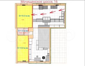 Можно объединить помещения (8, 9, 11, 12 = 36,6м) + (15-17 = 46,1) = 82,7м